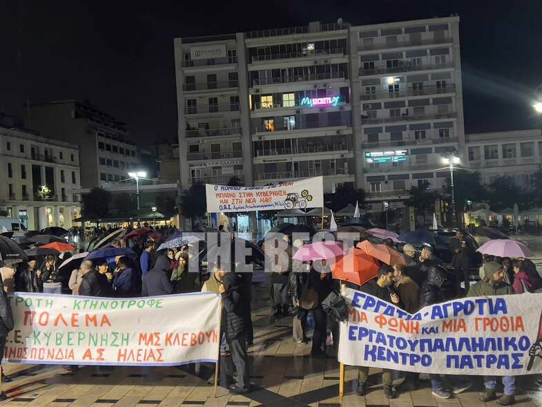 Αγρότες από Αχαΐα, Ηλεία και Αιτωλοακαρνανία συμμετείχαν σήμερα στην Πάτρα στο μεγάλο συλλαλητήριο της πλατείας Γεωργίου, που πραγματοποιήθηκε υπό βροχή, δείχνοντας αποφασιστικότητα για κλιμάκωση των κινητοποιήσεων σε πανελλαδικό επίπεδο.