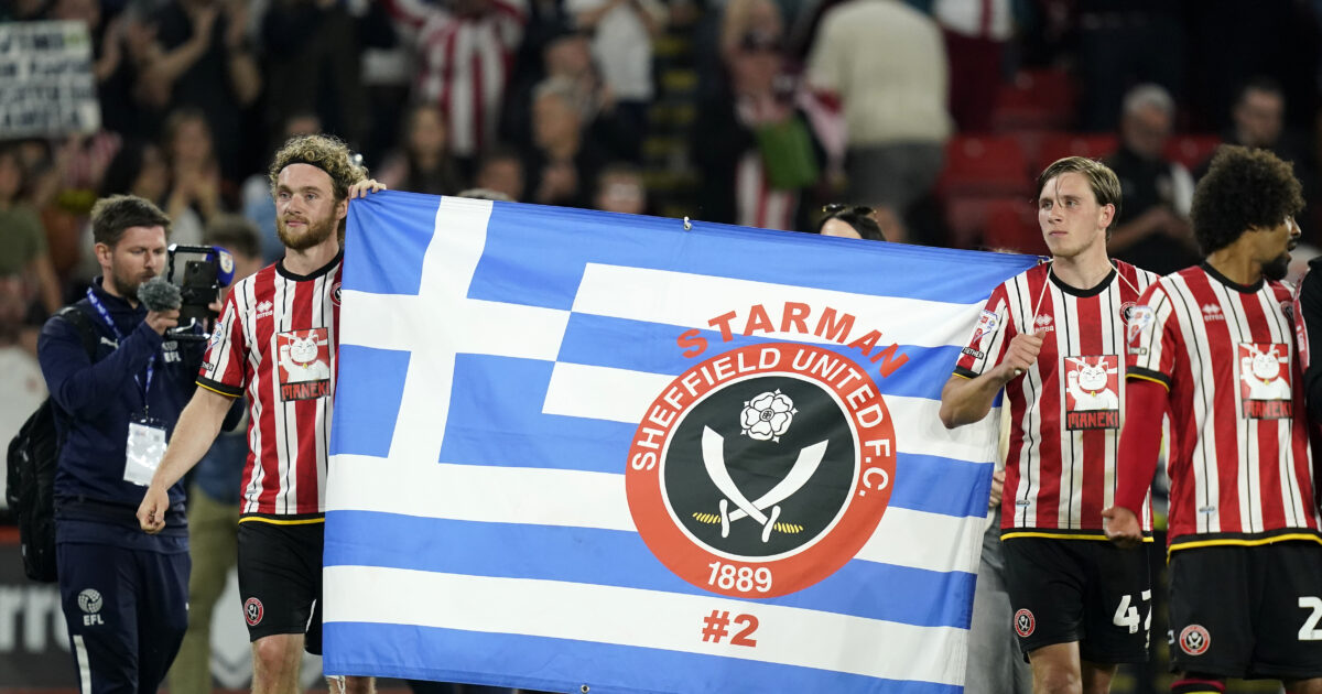 Η Σέφιλντ Γιουνάιτεντ πανηγύρισε την πρόκριση στον τελικό της Championship με ελληνική σημαία για τον Τζορτζ Μπάλντοκ