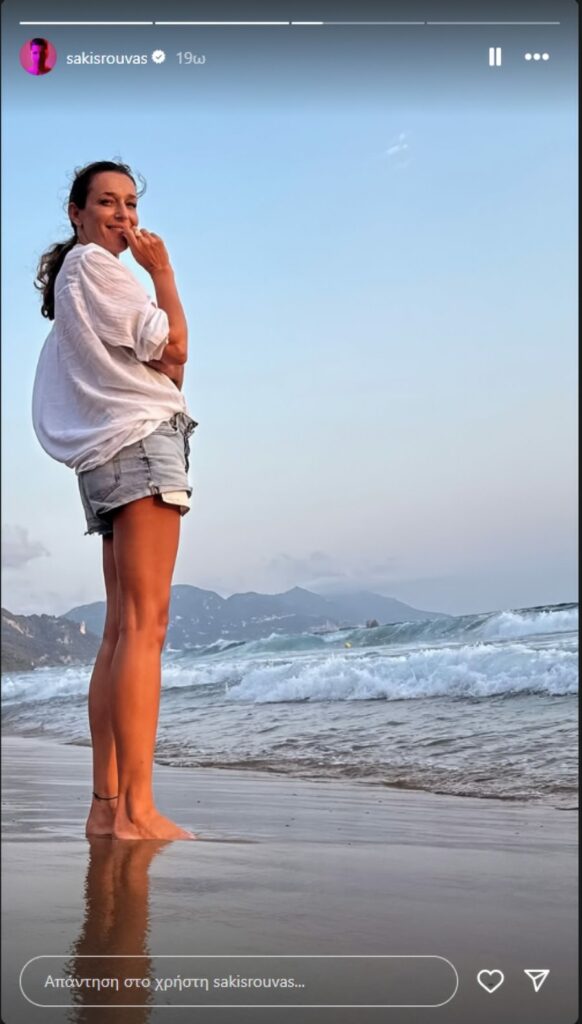 Το απόγευμα της Πέμπτης 21/8, ο Σάκης Ρουβάς, που έχει ιδιαίτερη αδυναμία στη φωτογραφία, δεν αντιστάθηκε στον φακό του και απαθανάτισε την σύζυγό του σε παραλία του νησιού. Η ίδια ποζάρει χαλαρή και κομψή με λευκό πουκάμισο και τζιν σορτσάκι, χαμογελώντας γλυκά στον σύζυγό της. Ένα στιγμιότυπο που αποπνέει καλοκαιρινή ανεμελιά και τονίζει τη ζεστή σχέση του ζευγαριού.