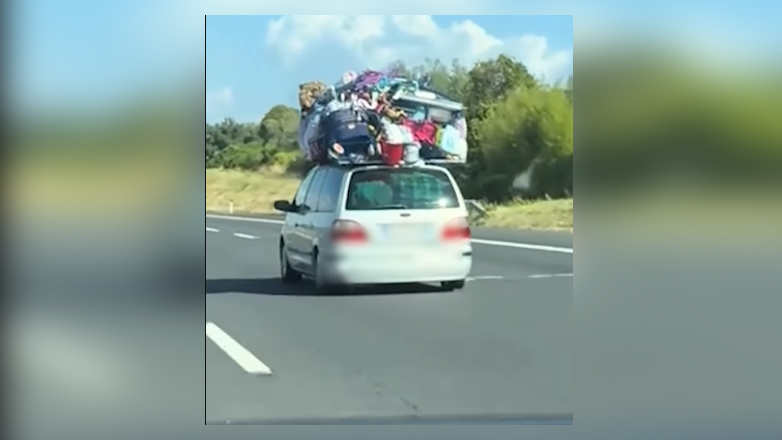 Στο βίντεο φαίνεται ένα μικρό αυτοκίνητο, του οποίου ο ιδιοκτήτης είχε καταφέρει να φορτώσει όχι μόνο το εσωτερικό του, αλλά και την οροφή με αντικείμενα που θύμιζαν… τη μετακόμιση ολόκληρης οικοσκευής. Όλα τα πράγματα είναι δεμένα πρόχειρα πάνω στο όχημα, το οποίο  κυριολεκτικά  έχει «κάτσει» από το βάρος.