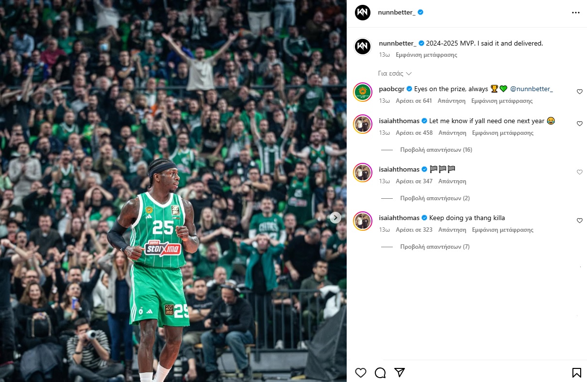 “Το να προέρχεσαι από εκεί που εμείς προερχόμαστε… Αυτό είναι ένα θαύμα. MEON για μια ζωή. Το 25 πάντα πηγαίνει στο καλύτερο παίκτη lol”, έγραψε ο Ρόουζ και έκανε repost το video στο οποίο ο Δημήτρης Γιαννακόπουλος δίνει το βραβείο του MVP στον Ναν.