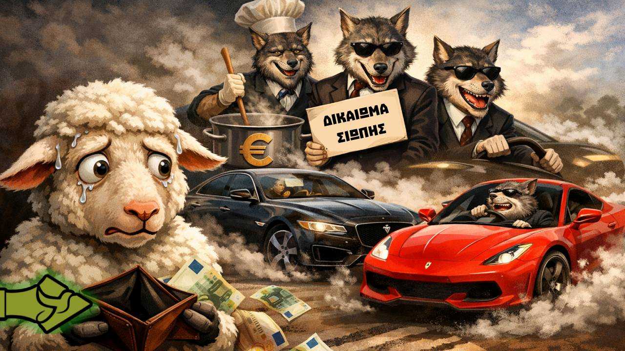 Ο ” Φραπές”. αφού προκάλεσε έναν ολόκληρο λαό με αυτή την ένοχη σιωπή του, φεύγει ανενόχλητος γκαζωνοντας την Jaguar. Ο άλλος κακός ο λύκος ο Μάγειρας, που “μαγείρεψε” τις επιδοτήσεις του ΟΠΕΚΕΠΕ, μας μιλάει για απολυτυριωσεις και φεύγει και αυτός ανενόχλητος γκαζωνοντας την Ferrari.