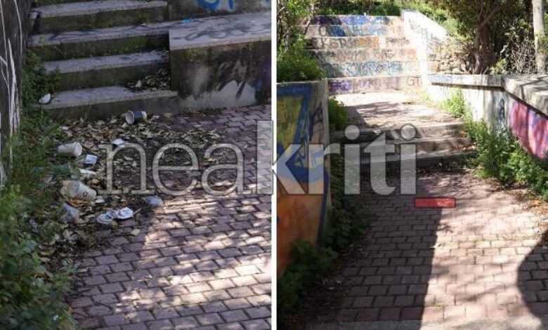 Σκουπίδια, σκοτάδι και φθορά δίπλα από το μνημείο του Καζαντζάκη
