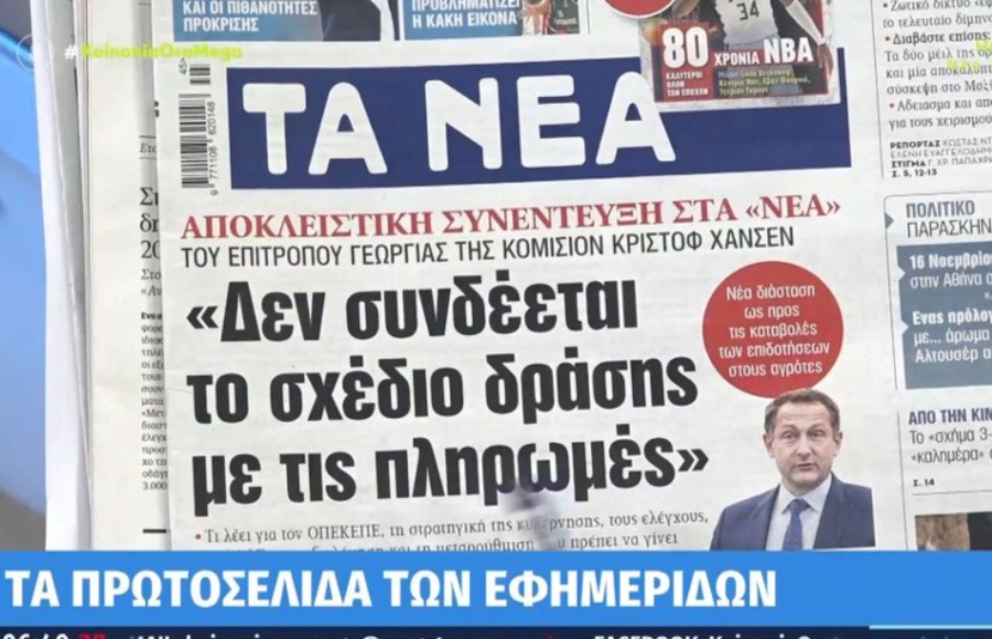 Τα σημερινά πρωτοσέλιδα των εφημερίδων παρουσίασαν το πρωί της Πέμπτης 6/11 στην εκπομπή «Κοινωνία Ώρα MEGA».
