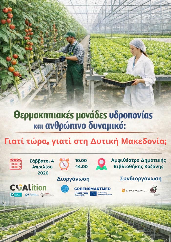 Η ημερίδα έχει θέμα: «Θερμοκηπιακές μονάδες υδροπονίας και ανθρώπινο δυναμικό: ανάγκες και προοπτικές ανάπτυξης στη Δυτική Μακεδονία»