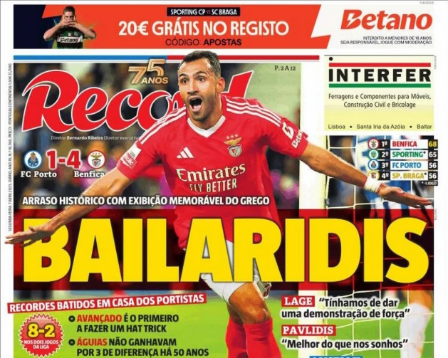 Το δε “Maisfutebol” έγραψε πως “… αυτό που έκανε ο Έλληνας είναι ένα έπος. Κόκκινο χαλί υπό τους ήχους του Βαγγέλη και ελληνική τραγωδία για τους ‘δράκους’. Αυτό ήταν το ντέρμπι του Παυλίδη”.