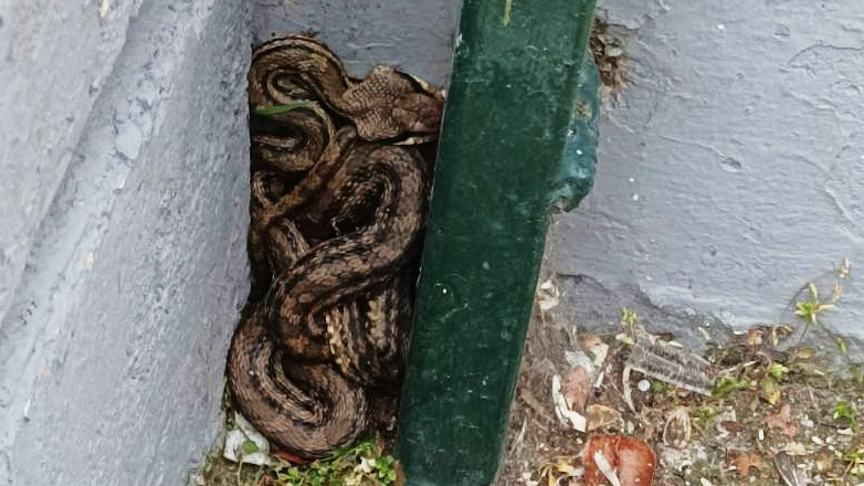 Πρόκειται για έναν λαφιάτη (ή λαφίτη), ένα ακίνδυνο είδος φιδιού που επέλεξε να κουρνιάσει σε μια γωνιά στο εξωτερικό προαύλιο ενός Γενικού Λυκείου.